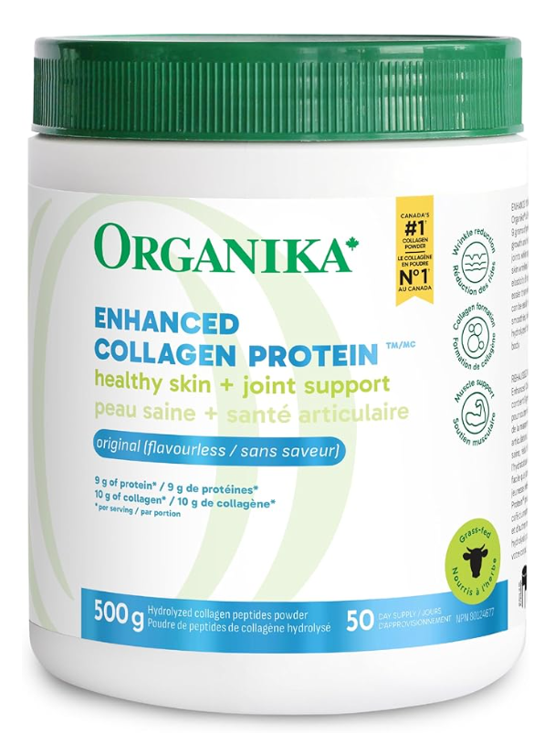 Organika Canadian-Made Enhanced Collagen Powder – for Healthy Hair, Skin, Nails, and Joints. Hydrolyzed Protein Peptides for Better Absorption